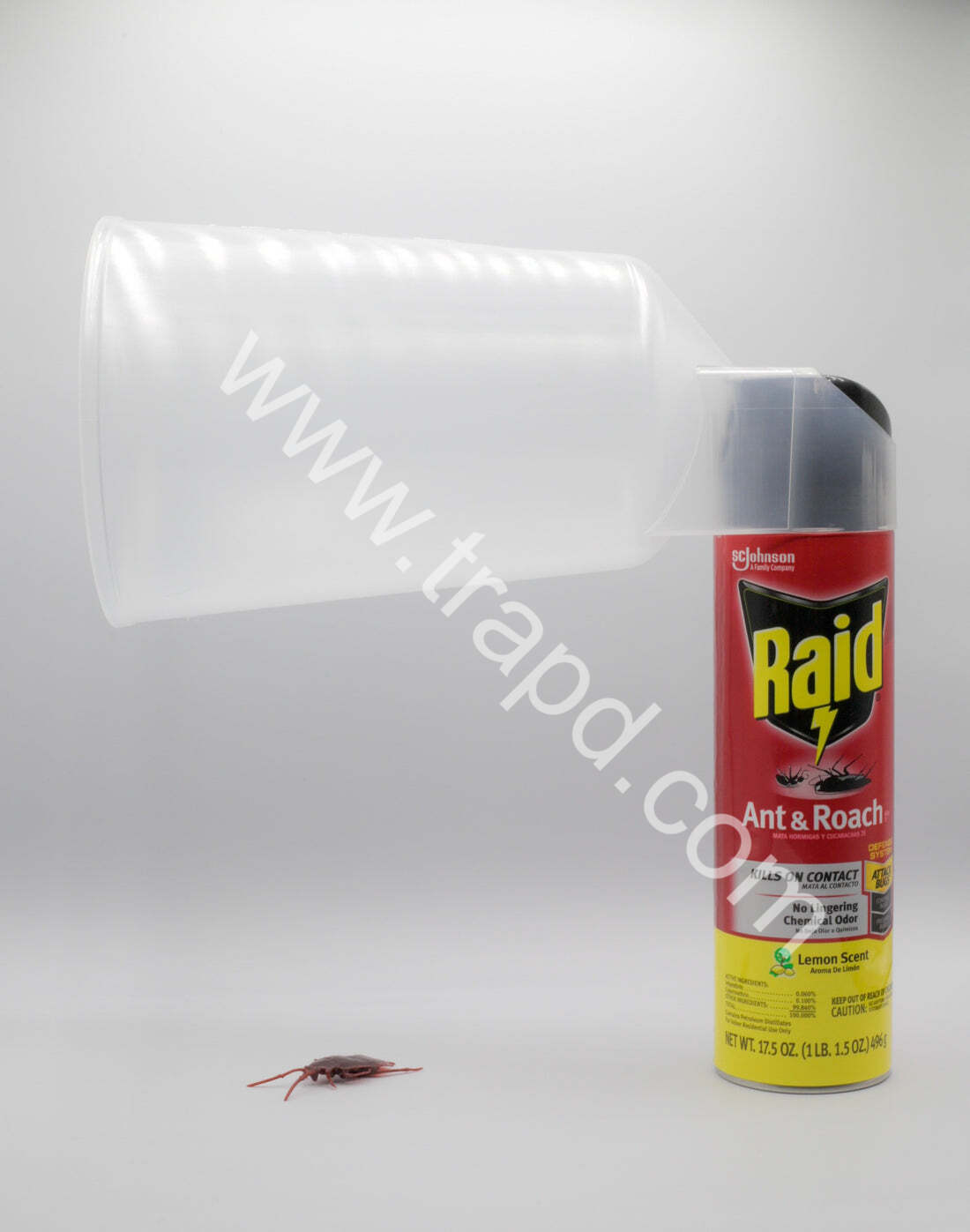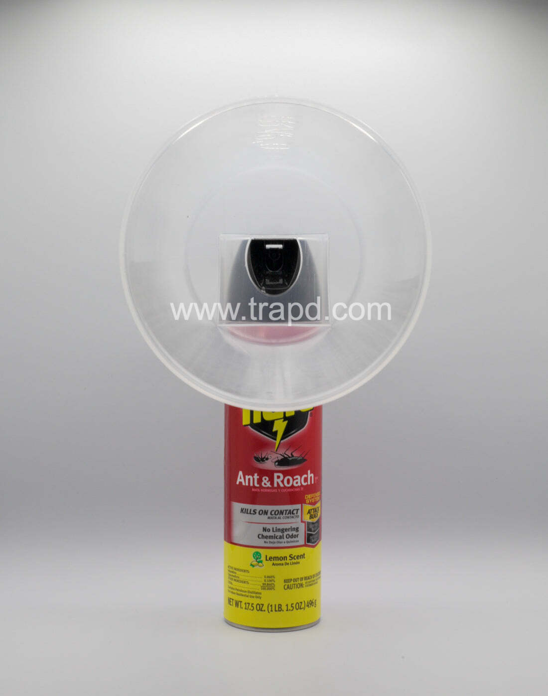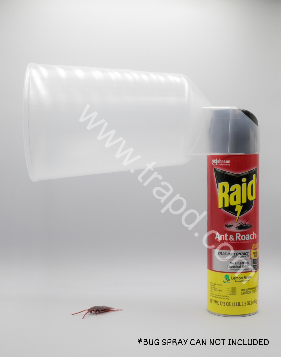Introducing Trap'd – The first and only plastic cone designed to revolutionize the way you use bug spray. Trap'd easily attaches to any standard can of bug spray, ensuring that targeted pests cannot escape during application. This clever design targets the bug spray into a confined area which significantly minimizes mess, overspray and odor. With Trap'd, you can use less bug spray to achieve more effective results, making it a cost-effective and environmentally friendlier option for maintaining a bug-free environment.