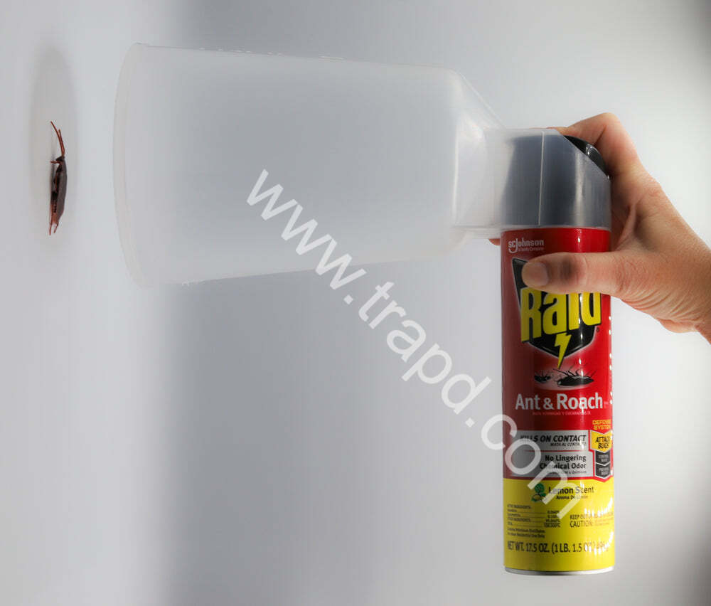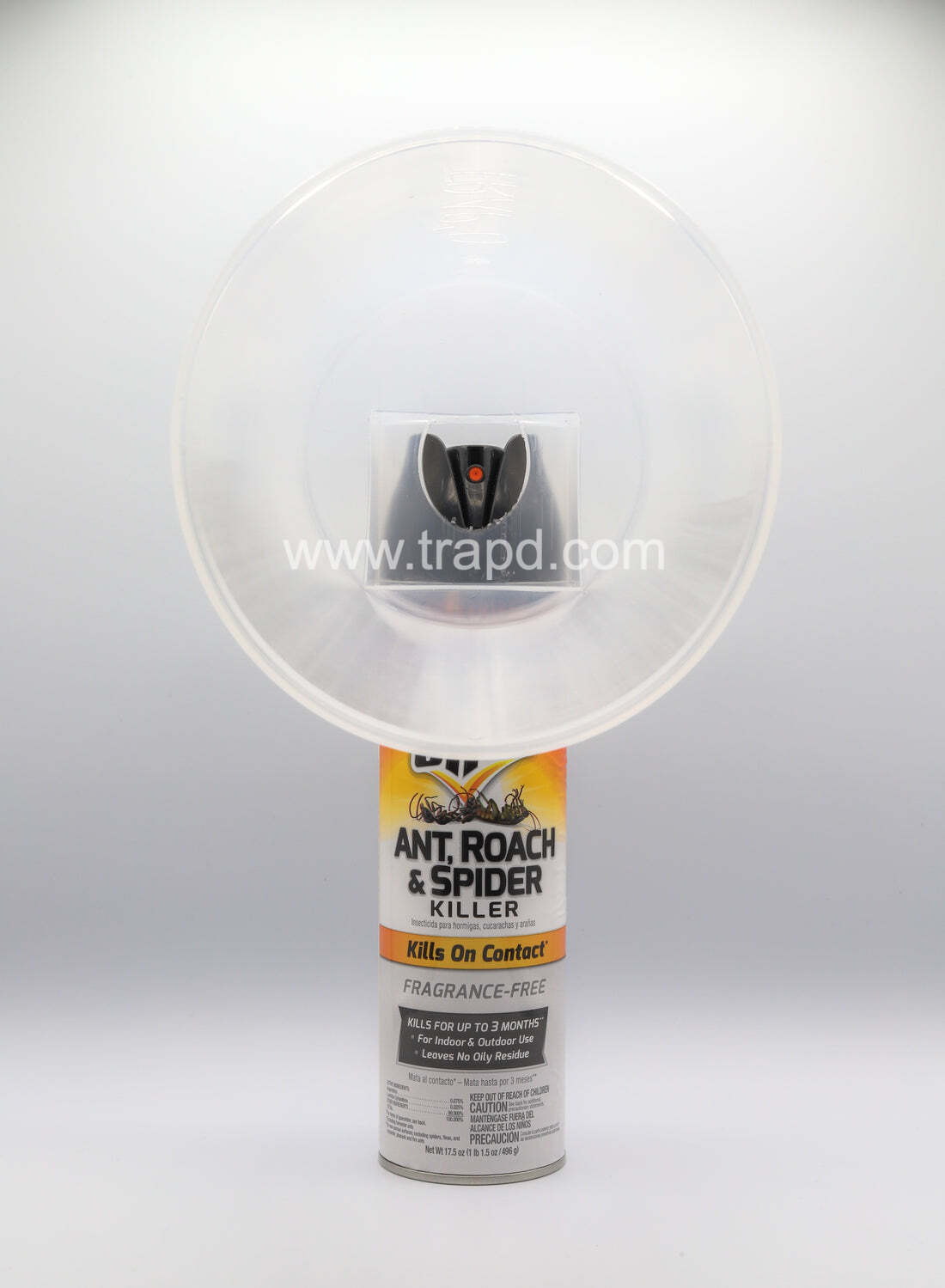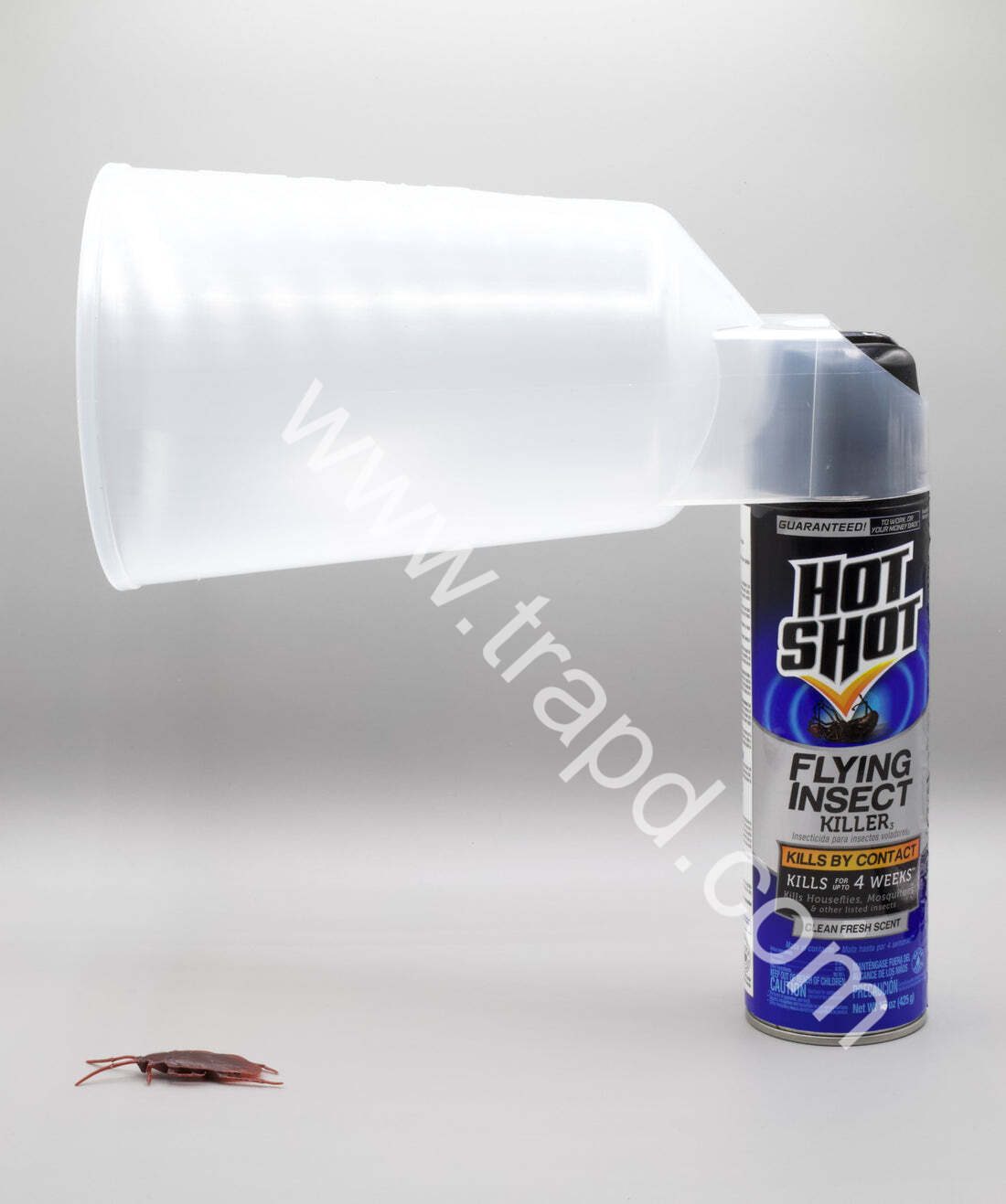 Introducing Trap'd – The first and only plastic cone designed to revolutionize the way you use bug spray. Trap'd easily attaches to any standard can of bug spray, ensuring that targeted pests cannot escape during application. This clever design targets the bug spray into a confined area which significantly minimizes mess, overspray and odor. With Trap'd, you can use less bug spray to achieve more effective results, making it a cost-effective and environmentally friendlier option for maintaining a bug-free environment.