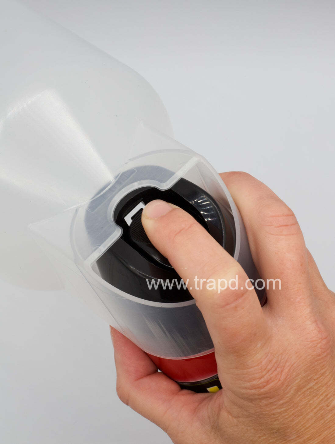 I'm pleasantly surprised how snug the Trap'd add-on fits perfectly onto the spray-can (spray can sold separately)! Looking forward to using this product, would definitely recommend or even purchase as a gift for others, thanks Trap'd!